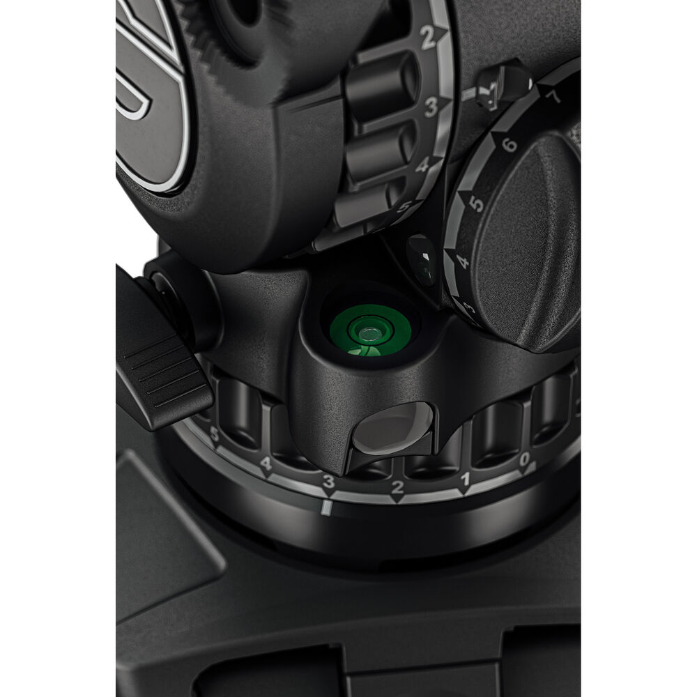 The SpeedLevel technology replaces the traditional head screw and tie-down design with a strong clamp built into the head bowl and a stud component that clamps onto your tripod bowl or other mounting platforms, such as a slider. Simply grasp the large lever on the head and pull it up to release the clamp, then press it down to lock your head in place. Partially lifting the lever allows you to quickly and easily level the head. The integrated PrismBubble level system is pressed once to illuminate the bubble level or twice to light up both the bubble level and the drag settings, a boon when working in darker environments. The bubble level also has a built-in prism, enabling you to easily level the head when the legs are set at a maximum height or an awkward angle.