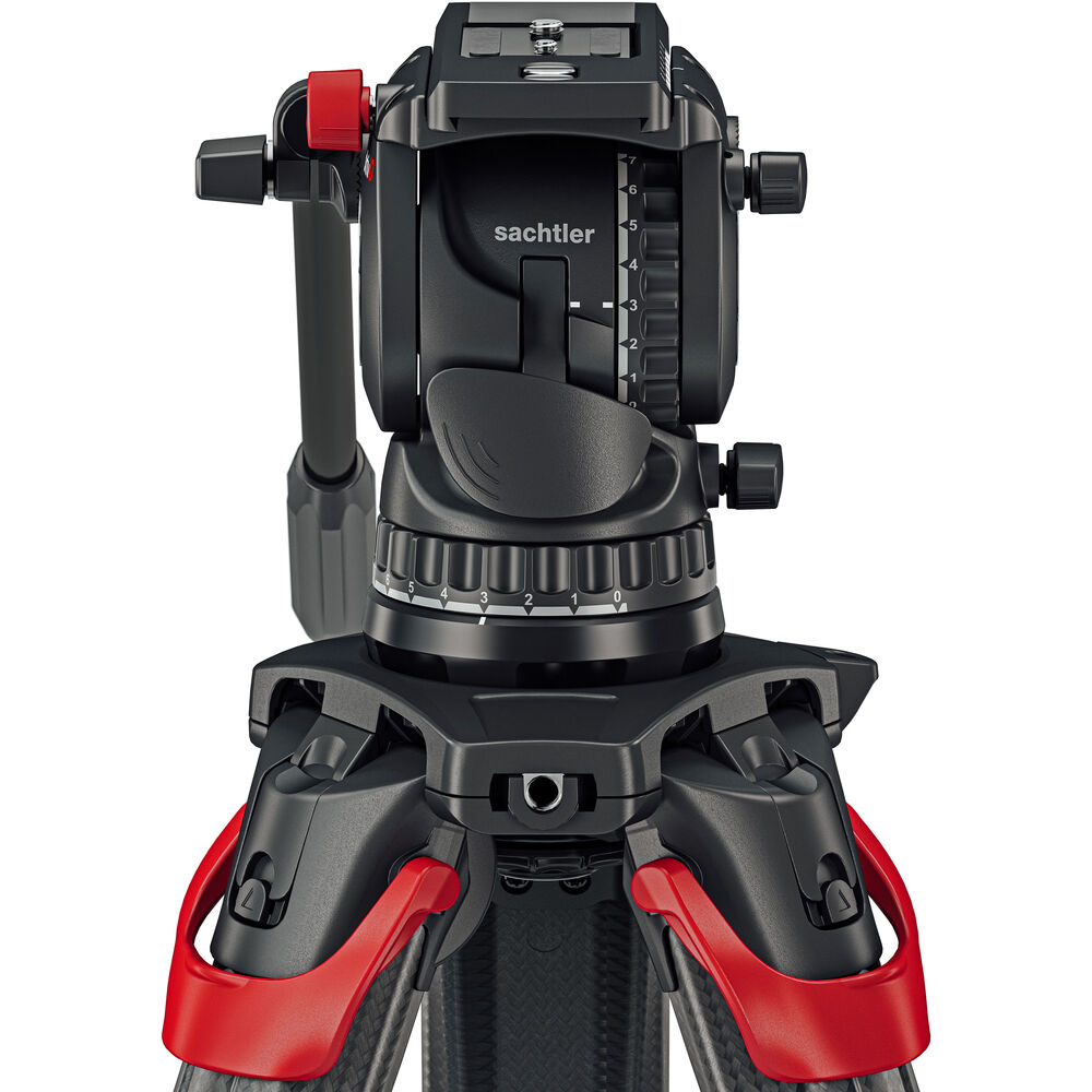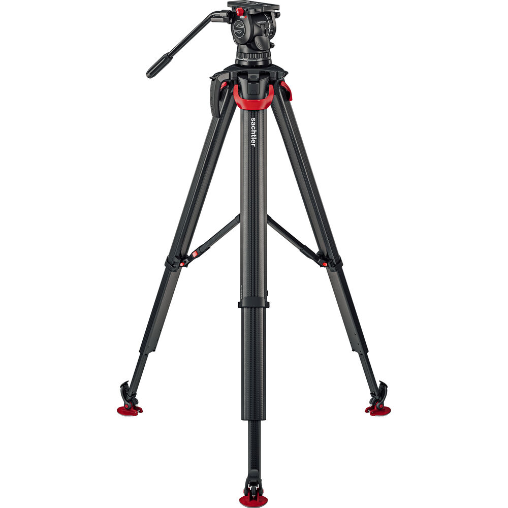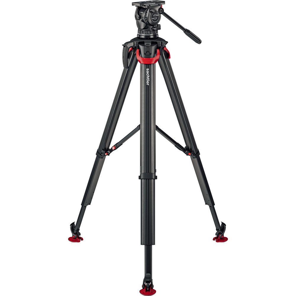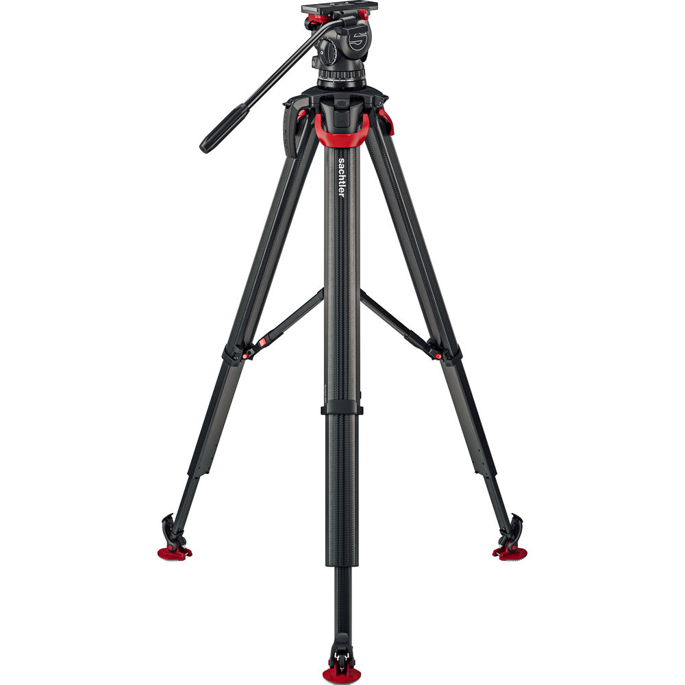The lightweight Sachtler flowtech 100 MS Carbon Fiber Tripod with Mid-Level Spreader offers notable stability and quick setup and adjustments for payloads up to 66 lb. The novel flowtech design features quick release locks at the top of the legs, eliminating the need to stoop while adjusting the tripod height. All three legs can be deployed simultaneously to quickly find their individual levels on uneven ground.