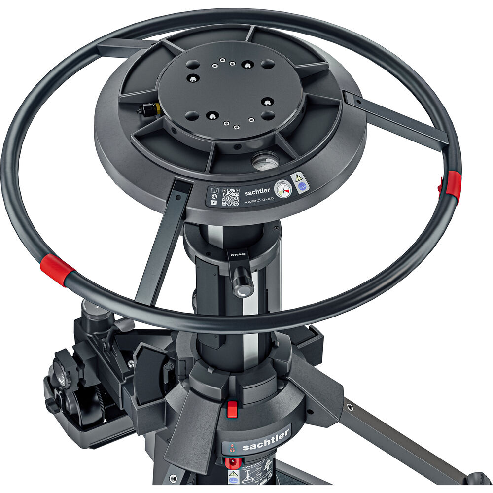 For smooth single-operator camera moves, crab or standard steering, or 30.3" in-shot height adjustment, the Sachtler Vario Ped 2-80 is your go-to camera support for cameras and rigs weighing up to 176 lb. Suitable for use on smooth surfaces and the studio floor, the pedestal can be used as support on exteriors and interiors. With its air inlet valve and an optional manual pump or compressed air tank, you can even use the pedestal in remote locations where power can be difficult to source.
