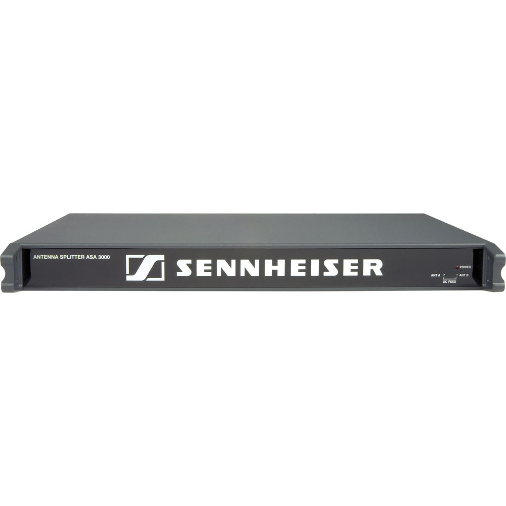 With the ASA 3000 2 x 1:8 Active Antenna Splitter from Sennheiser, up to 8 receivers (EM 3031) or twin receivers (EM 3032, EM 3532) can be operated with only 1 pair of diversity antennas. Each diversity section is fitted with a wideband input module, which can be exchanged for a selective input module.