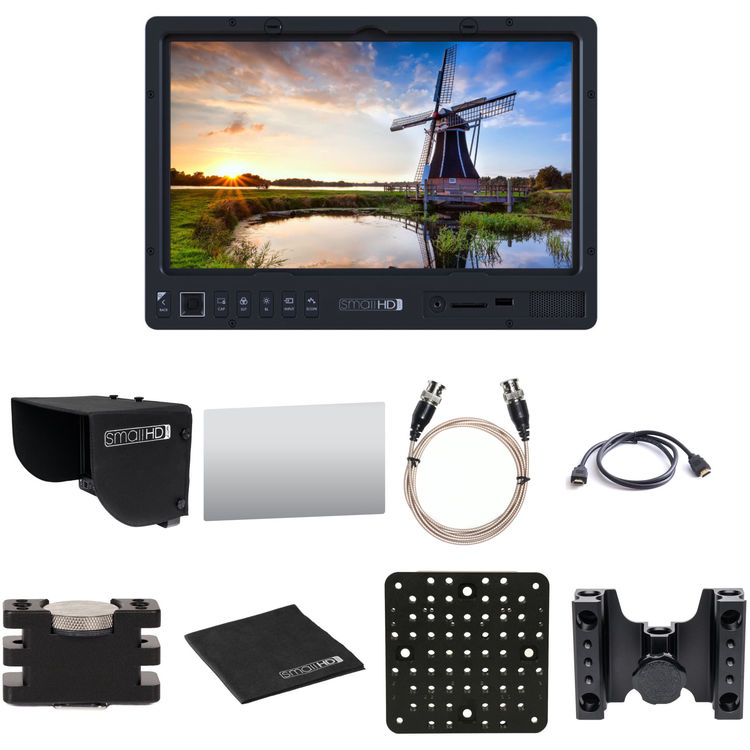 If you ever wanted a production-ready 13" monitor, with the SmallHD 1303 HDR 13" Production Monitor Black Friday Promo Kit, now is the time. This kit includes everything you need to build your 1303 HDR monitor. A screen protector, sun hood, and C-stand mount are included. Use the RapidRail mount to conveniently attach a 1/4"-20 accessory to the rear of the monitor, and the cheese plate to provide a mounting point for a professional battery plate. Additionally, HDMI and SDI cables are included. See below for more information on the individual items included in this kit.