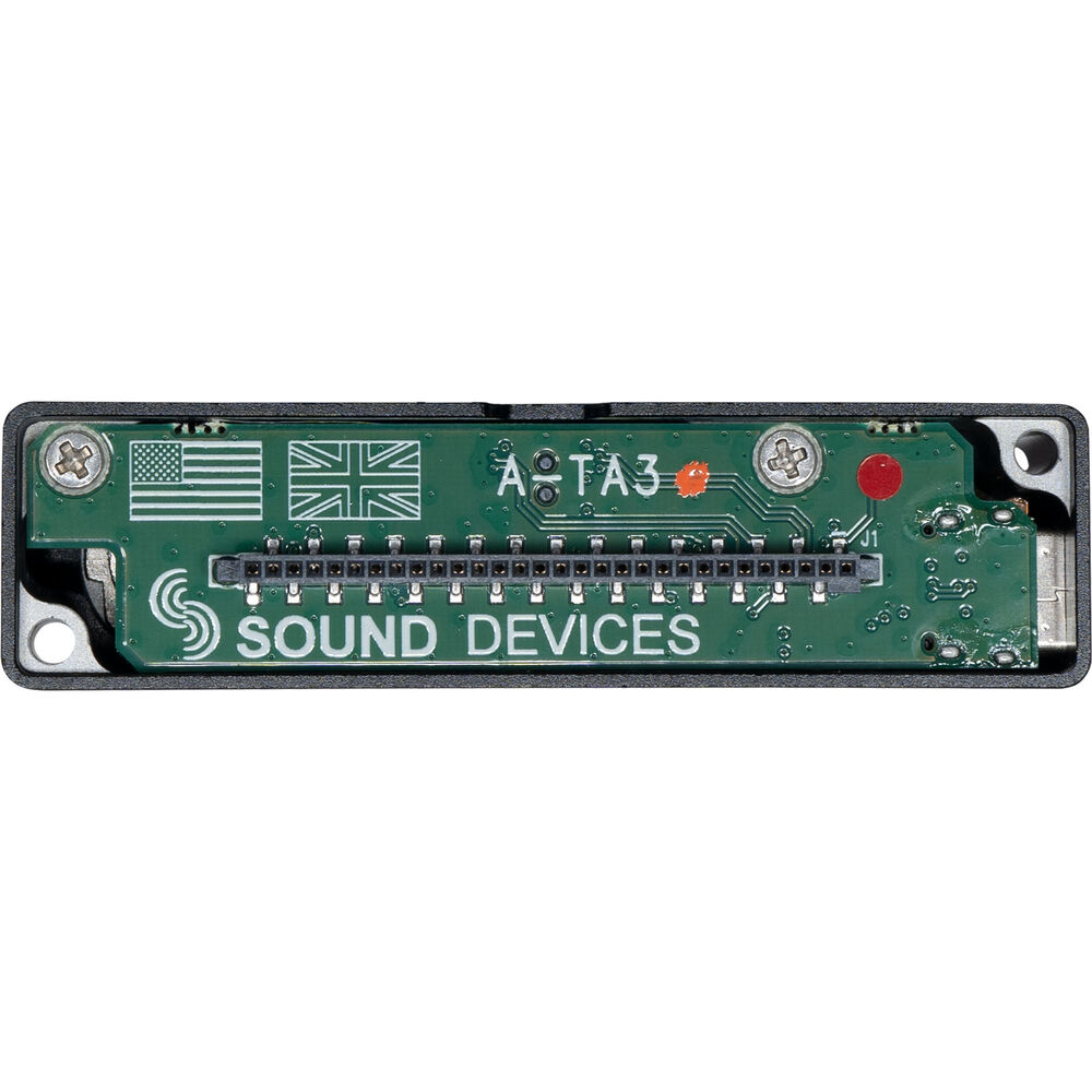 The A-TA3 from Sound Devices is an adapter for the A10-RX and A20-RX receivers that supplies a pair of TA3M audio outputs along with Hirose and TA4 connections for powering. The first TA3M output can also be used as a stereo AES digital output. The adapter also supplies a USB Type-C port designed to facilitate firmware updates for the receiver.
