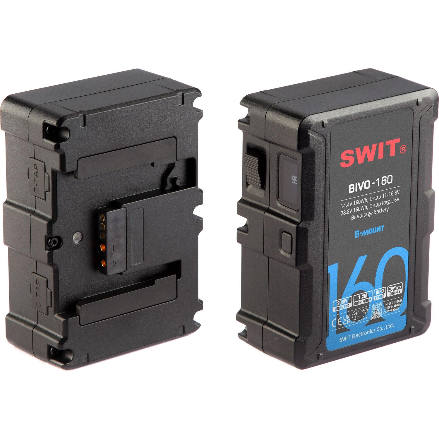 Power your B-mount camera and pro video accessories with this high-capacity 14.4/28.8V Dual Voltage 160Wh B-Mount Battery from SWIT. Robust and versatile, the battery's B-mount interface enables powering B-mount accessories, cameras, or lights with the correct voltage, which is determined by the device's B-mount plate. This dual-voltage model can power either 14.4V or 28.8V devices via its B-mount interface.