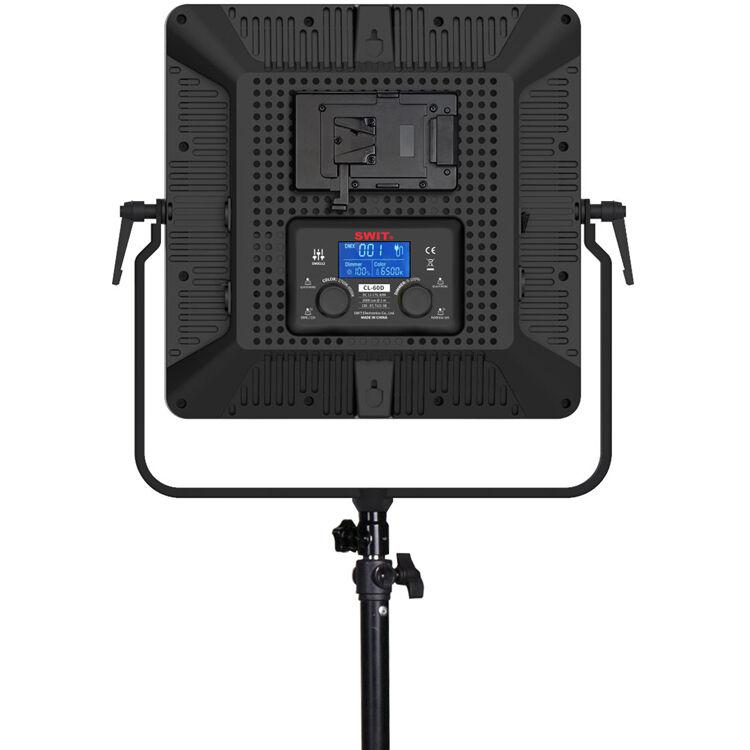 Featuring a sleek design with color, output, and power options, this 60W 1:1 Bi-Color SMD LED Panel Light from SWIT has everything you need to produce quality work in the studio or on location. Featuring an illuminated surface that measures 14 x 14", the light has a variable CCT range of 2700 to 6500K. The CRI/TLCI ratings are 98 and 99 respectively to indicate a high degree of color accuracy. It's also dimmable from 0 to 100%. You can make these adjustments locally on the fixture or from a DMX remote console.