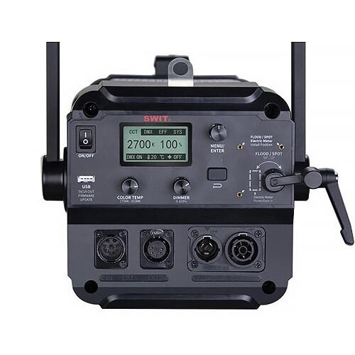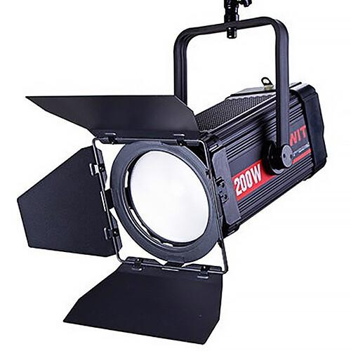The 200W FL-C200D Bi-Color LED Fresnel Light from SWIT is a highly bright COB LED Fresnel light for broadcast studio, theatre, and film set applications. The compact 15.7 x 6.9 x 6.9" fixture is equipped with a double side Fresnel and fly's eye compound lens. Another important attribute is the fan that can be turned off while recording, a real asset in sound-sensitive locations. With a high CRI of 97 and TLCI of 99 to keep faithful original colors, it can be focused from 15 to 50° for spot or flood lighting. Extended 2700 to 8000K CCT and brightness output can be controlled onboard with an LCD screen and local controls or via DMX. The FL-C200D comes with detachable four-leaf metal barndoors and a yoke bracket for further lighting control and convenient mounting. This unit is powered by the included AC cable.