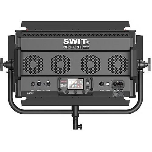 Designed for lighting TV and film productions, the 1 x 2' Monet-700 RGB LED Light Panel from SWIT offers 2800-10,000K CCT color temperature turning with an extremely powerful output of 20,000 lux at 3.3' at 5600K. This 1 x 2' panel uses a powerCON TRUE1 AC power adapter to produce ultra-bright outputs. Highly versatile with its onboard, Bluetooth, and wireless connections, the Monet-700 uses an etherCON LAN connection, as well as a built-in CRMX receiver and DMX-512 5-pin XLR in and out. With high CRI and TLCI ratings of 95, this 700W light produces consistent and illuminating light each time. Its studio yoke allows for simple mounting, and the included diffusion panel and barndoors add greater flexibility for sculpting and refining lighting setups.