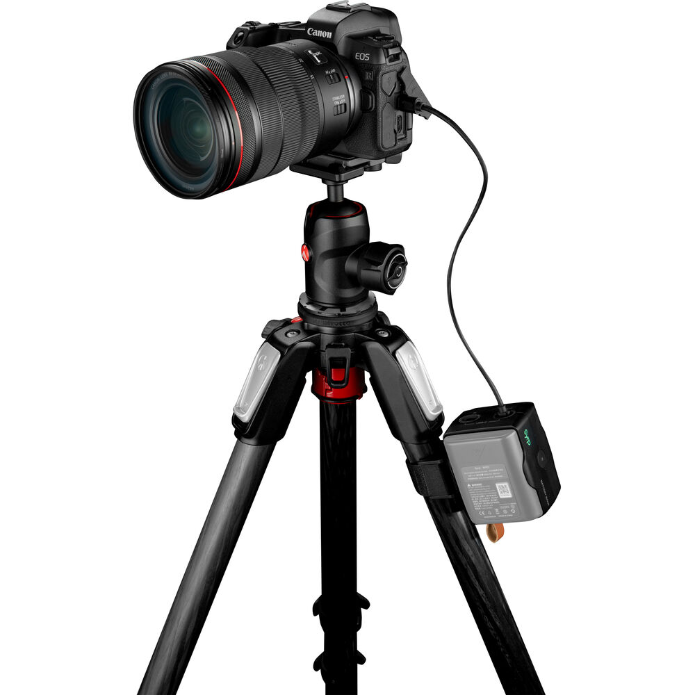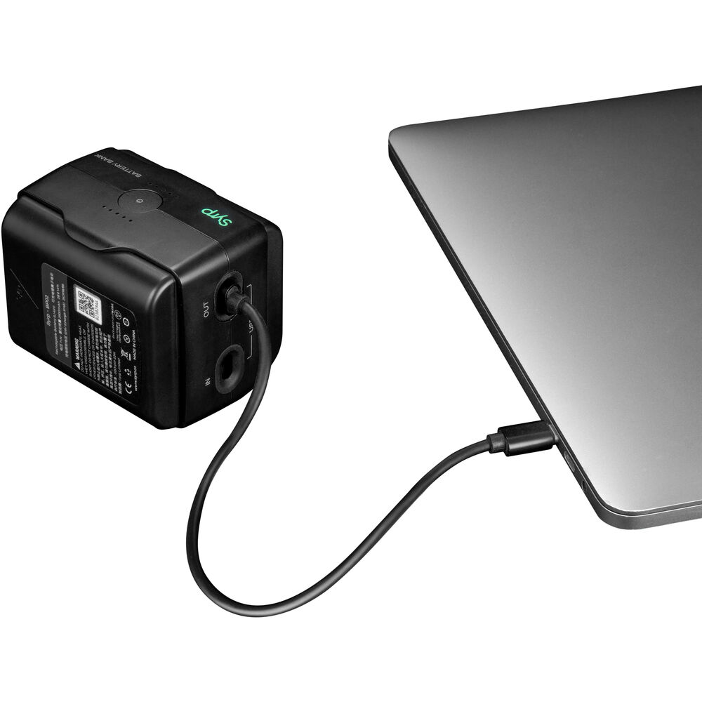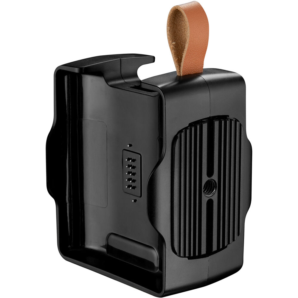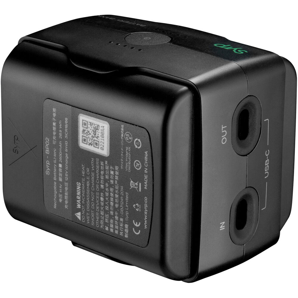 The Syrp Power Bank is a combination hot-swappable battery charger and power bank, allowing you to power your cameras, mobile devices, and select Syrp motion control systems endlessly via USB Type-C or Type-A power output ports. The Power Bank holds two Syrp BP-02 batteries, providing up to 15600mAh of power. The configuration allows you to sequentially swap spent batteries one at a time for a fresh battery without powering down your device. It charges via its USB Type-C input port and the included charging cable (USB charger not included). It features a 5-LED battery gauge, one for each battery. You can use the Power Bank to power your devices or charge batteries. This provides more flexibility to your productions, as before the Power Bank you could only charge the BP-02 batteries within the Genie II device when it was not in use. You can hang the Power Bank from the built-in fabric loop or use the integrated 1/4"-20 threaded mounting hole to attach it to a stand, accessory arm, or the included tripod clamp.