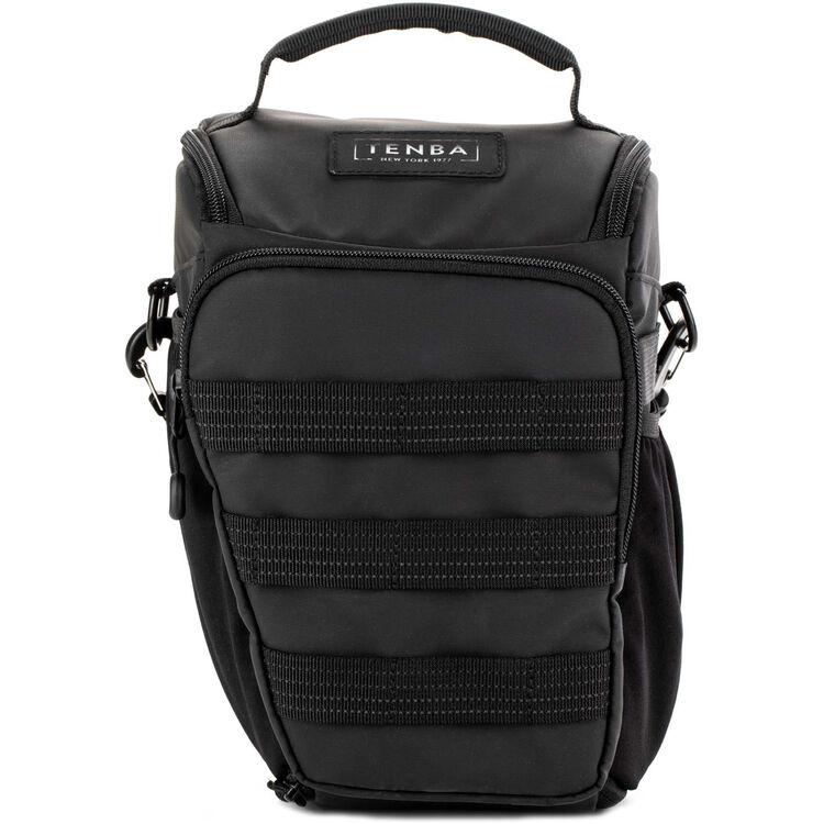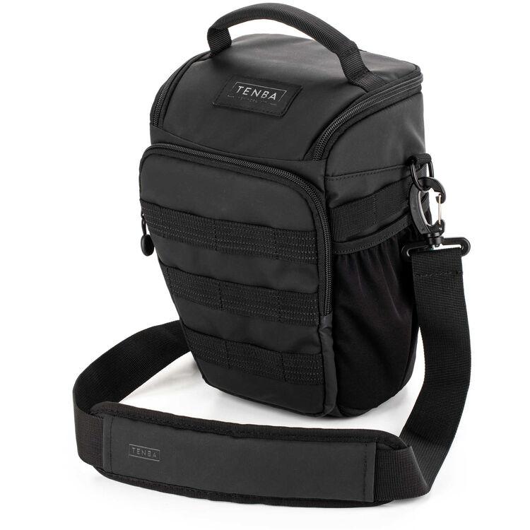 The black Axis V2 Top-Loading Camera Bag from Tenba has a 4L capacity and is a great companion for any professional content creator, photographer, or filmmaker. It features a convenient top-loading design and is the first bag to include a hidden neoprene pocket for an Apple AirTag or Tile Bluetooth Tracker. The exterior MOLLE webbing allows you to add additional Tenba accessories such as lens capsules, battery pouches, and card wallets. The pack holds a mirrorless or DSLR camera with an attached 24-70mm lens, or a 70-200mm lens when the bag is expanded. It will also hold a DJI Mavic drone or other compact drone. The reversible rain cover is black on one side and silver on the other to reflect UV rays.
