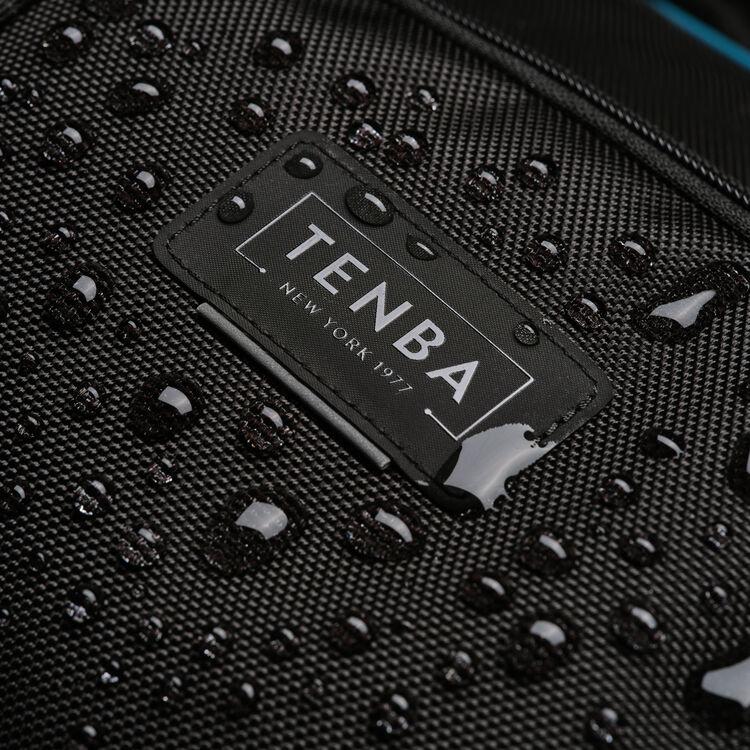 The 18L Cineluxe V2 Shoulder Bag 16 in black from Tenba accommodates compact mirrorless, DSLR, or cinema cameras up to 14.5" long, plus assembled accessories. It features a doctor bag-style opening down the middle for easy access to stored gear and maintaining the bag's footprint when opened. Upgrades to the V2 design include a hidden AirTag tracker pocket, MOLLE webbing on the exterior, lockable zippers, and a reversible rain cover to protect your gear from the elements.