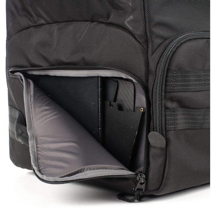 Upgrades to the V2 design include a new hidden AirTag tracker pocket, MOLLE webbing on the exterior, lockable zippers, and a reversible rain cover to protect your gear from the elements. Like other Cineluxe models, this backpack has a built-in harness cover to protect the straps when laying on a wet or dirty surface. A zippered pouch, two soft-padded wraps, and two flex-core dividers help organize your stored accessories while protecting them from any jostling during travel.