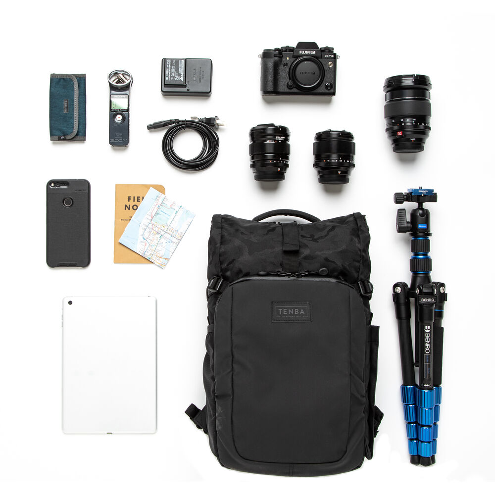 The vintage-inspired canvas Tenba Fulton v2 14L Photo Backpack, in black & black camouflage, has been updated, but retains its functionality for photographers and multimedia creators.