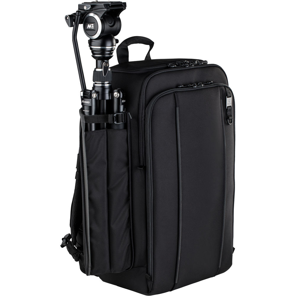 - An expandable zippered side pocket lets you stash a tripod in just a few seconds. Also holds compact light stands, shot mics or a monopod. Stows flat against the bag when not in use.