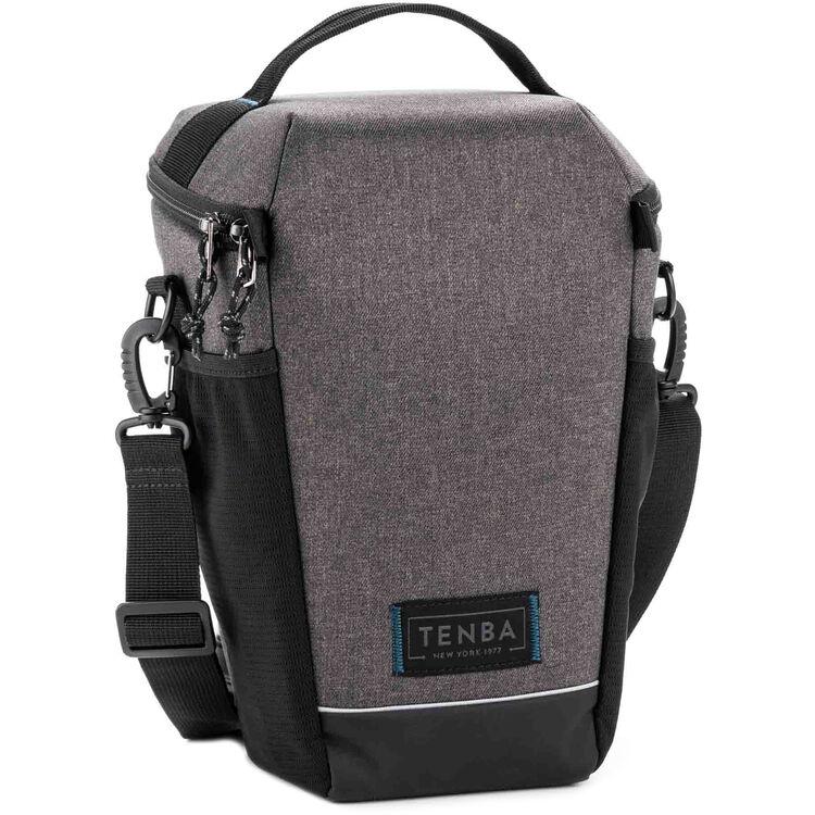 The gray Skyline V2 Top Load 9 Camera Bag from Tenba is designed to protect a mirrorless or DSLR with a lens up to 6" plus memory cards, batteries, and other accessories during storage and transport. The lid opens away from your body, so it won't interfere when you want to quickly remove your gear. This bag is made from water-repellent fabrics and features YKK zippers. The reinforced stitching ensures long-term durability. Expandable side mesh pockets stretch to hold water bottles or other accessories. The interior zippered pocket is ideal for storing memory cards and batteries.