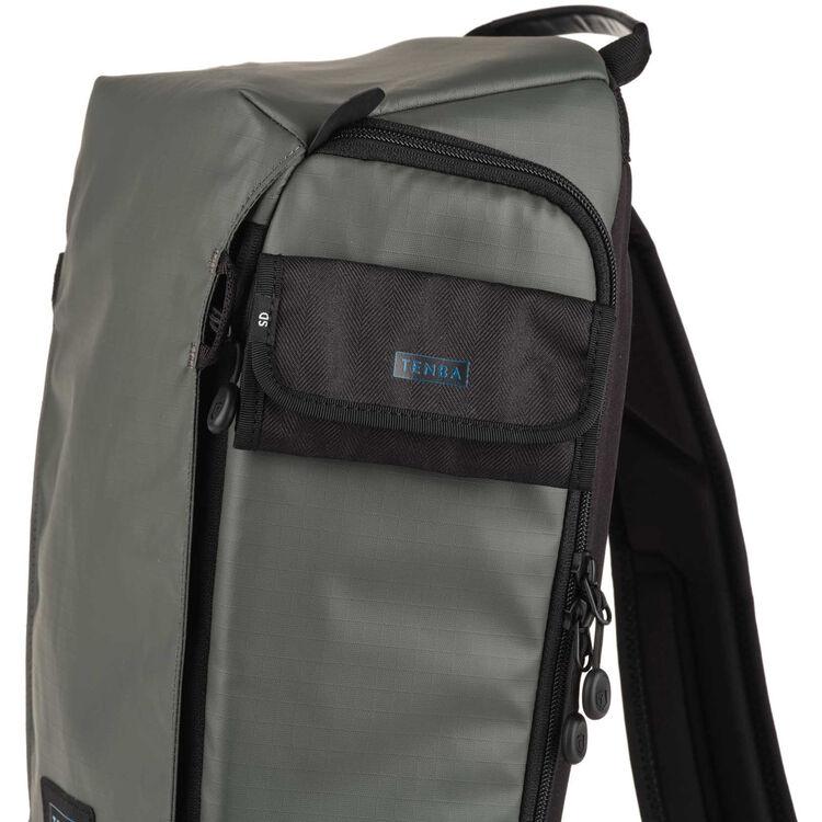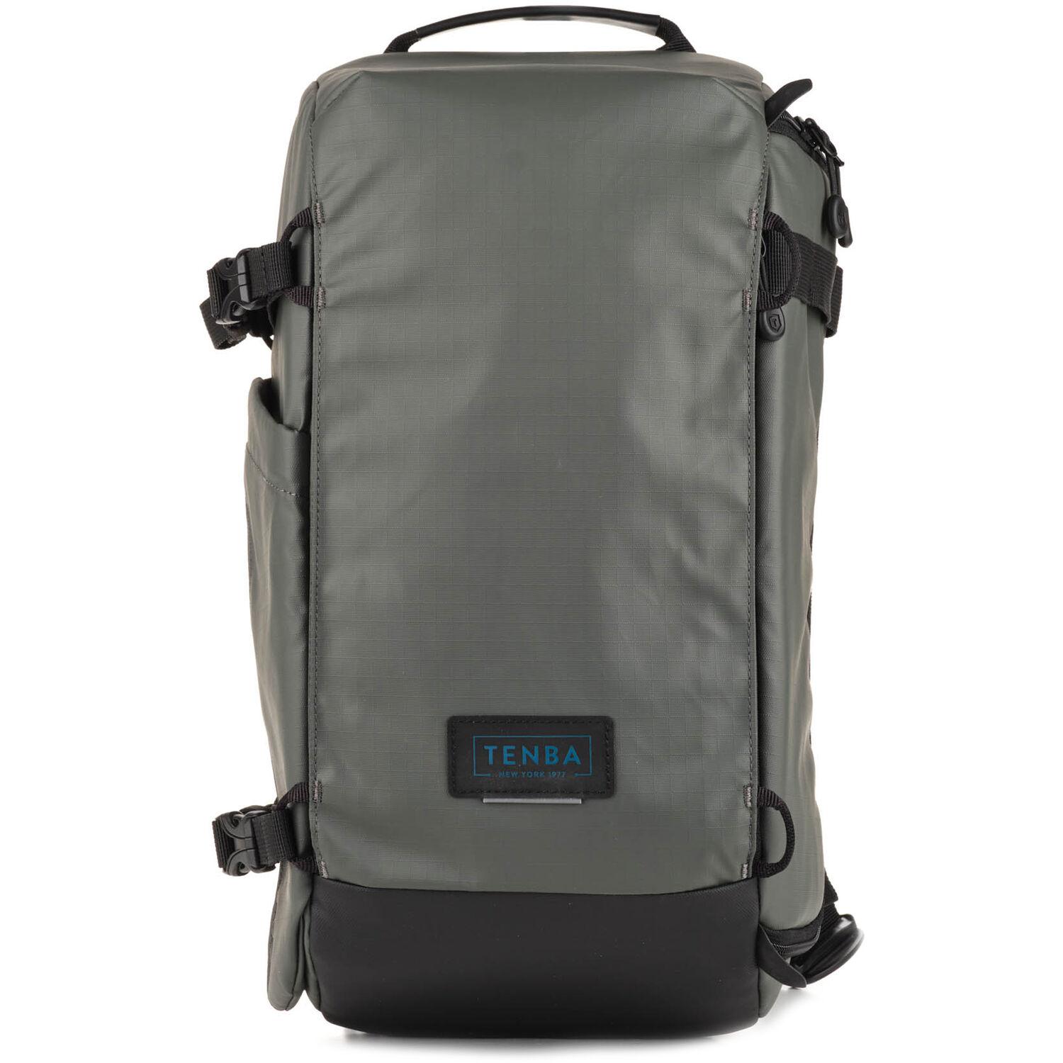 Comfortably carry your camera kit with the gray Solstice V2 Sling Bag from Tenba. It has a 12L capacity to carry your DLSR or mirrorless camera with three to five lenses, including a camera and lens combo up to 15.5" in length. This bag accommodates the Tamron/Sigma 150-600mm and similar-sized lenses. There's also space for your 8" tablet or iPad mini and a DJI Mavic or other compact drone. Quickly and easily grab your camera via the side access door. The reinforced side pocket holds a small to medium size tripod and the repositionable lash straps attach a jacket to the front of the pack. A hidden neoprene sleeve stores your Bluetooth or AirTag tracker so you can recover the bag if it becomes lost or stolen.