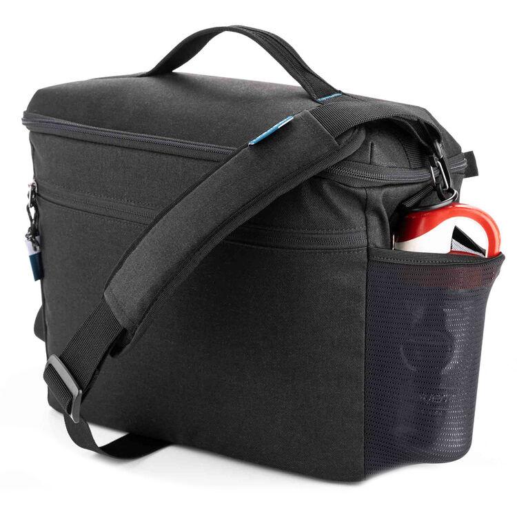 The black Tenba V2 13 Shoulder Bag is a convenient and sturdy choice for carrying your camera kit and more. The bag has enough space for one to two mirrorless or DSLR cameras with four to five lenses up to 70-200mm f/2.8. Made from water-resistant fabric with reinforced stitching and durable YKK zippers, the bag keeps your gear safe and secure in various conditions. The lid is designed to open away from your body so you can quickly access your gear. Stretch mesh side pockets accommodate your water bottle, tripod, or umbrella. An interior zippered pocket is ideal for small accessories like memory cards or spare batteries. Comfortably carry your bag with the removable shoulder strap.