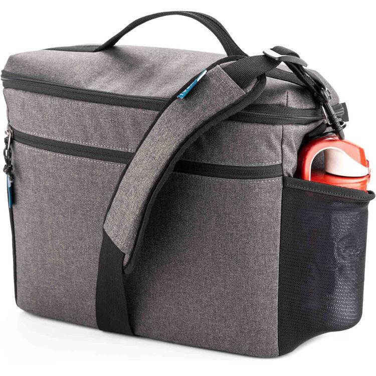 The gray Tenba V2 13 Shoulder Bag is a convenient and sturdy choice for carrying your camera kit and more. The bag has enough space for one to two mirrorless or DSLR cameras with four to five lenses up to 70-200mm f/2.8. Made from water-resistant fabric with reinforced stitching and durable YKK zippers, the bag keeps your gear safe and secure in various conditions. The lid is designed to open away from your body so you can quickly access your gear. Stretch mesh side pockets accommodate your water bottle, tripod, or umbrella. An interior zippered pocket is ideal for small accessories like memory cards or spare batteries. Comfortably carry your bag with the removable shoulder strap.