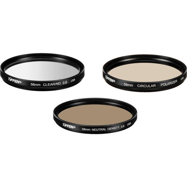 The Tiffen 58mm Digital Light Control Filter Kit contains three highly useful filters for aiding in greater control over exposure results and the overall appearance of imagery. These filters, a circular polarizer, a 0.6 solid neutral density, and a 0.6 graduated neutral density, are ideally-suited for use with DSLR cameras due to their increased sensitivity to light. Each of these filters can uniquely benefit working in difficult lighting conditions in order to produce well-exposed and balanced imagery.