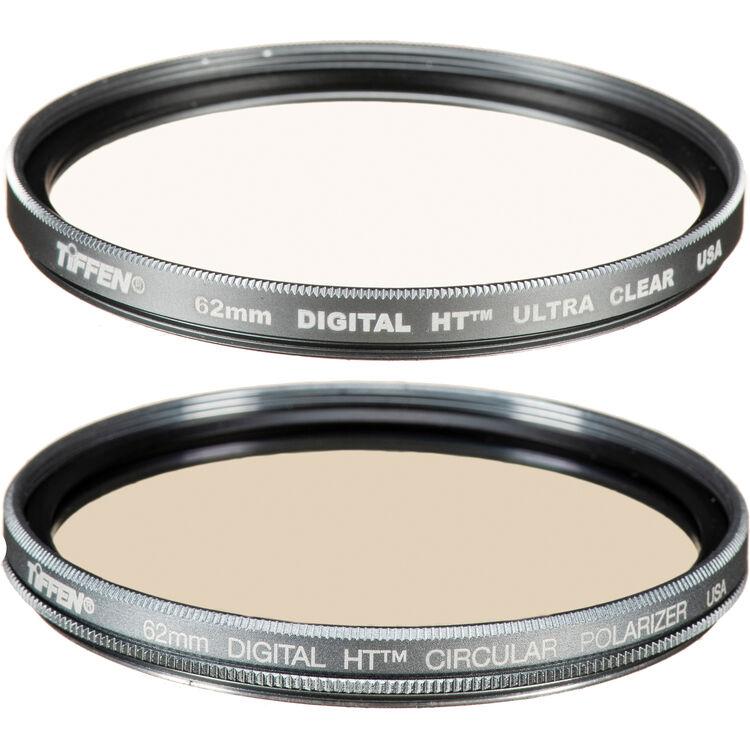Bundling a duo of filters well-suited for outdoor shooting, the 62mm Digital Twin Pack Filter Kit from Tiffen includes their advanced, multi-coated Digital HT Ultra Clear and Circular Polarizer filters, as well as a filter pouch to protect the filters when not in use.