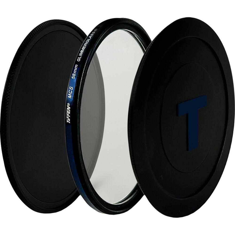 The 58mm MCS Glimmerglass Grade 1 Filter from Tiffen is a diffusion filter for portrait and beauty shots that helps soften skin details, blemishes and wrinkles. It also produces glowing highlights and a mild reduction in contrast for a more ethereal appearance. The grade 1 diffusion provides a small amount of softening and overall image alteration. It provides a more cinematic look to stills and video when using digital cameras. This glass filter features a sparkling appearance when viewed from the front, which models may find appealing.