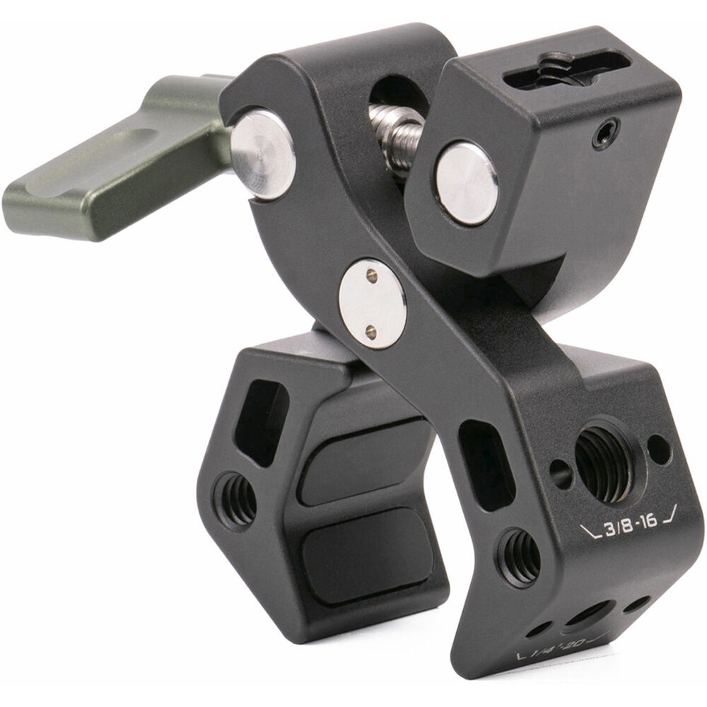 Mount an accessory onto a rod, stand, or pipe with this black Accessory Mounting Clamp from Tilta. The durable clamp is made from durable aluminum and it can clamp around a pipe measuring 0.5 to 1.2" in diameter and secures using a locking lever.