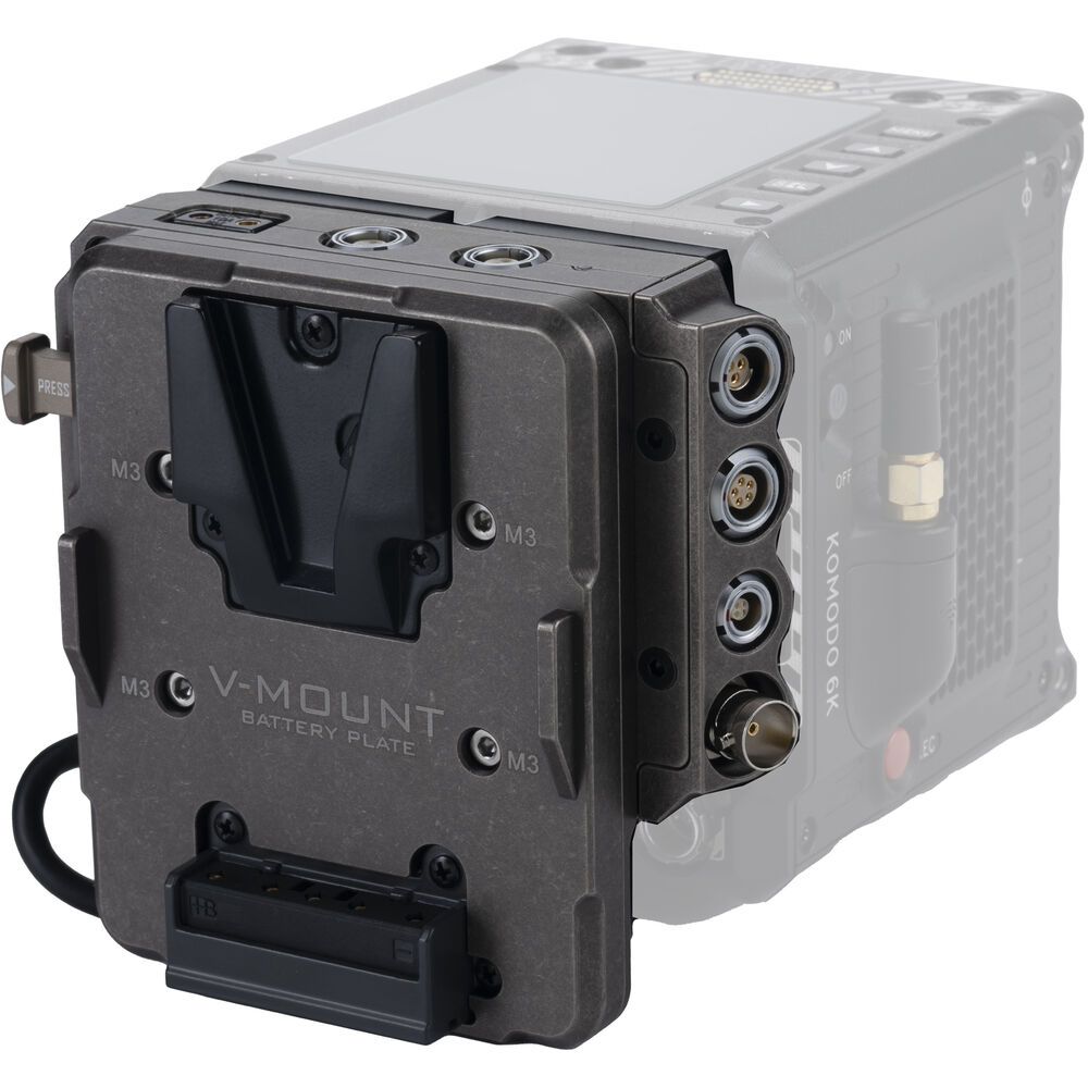 Facilitates communication between the battery and the KOMODO, enabling the camera to display the remaining battery life for V-mount batteries.