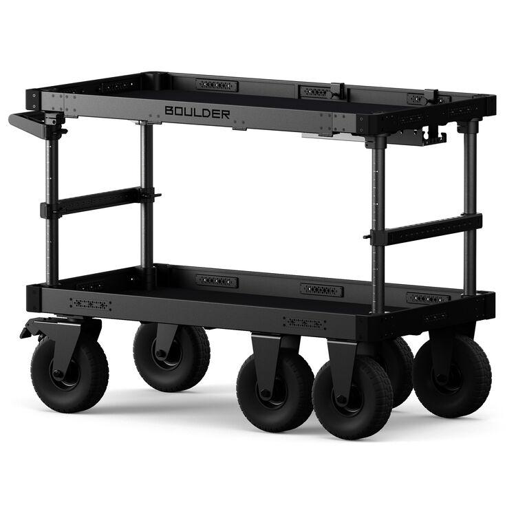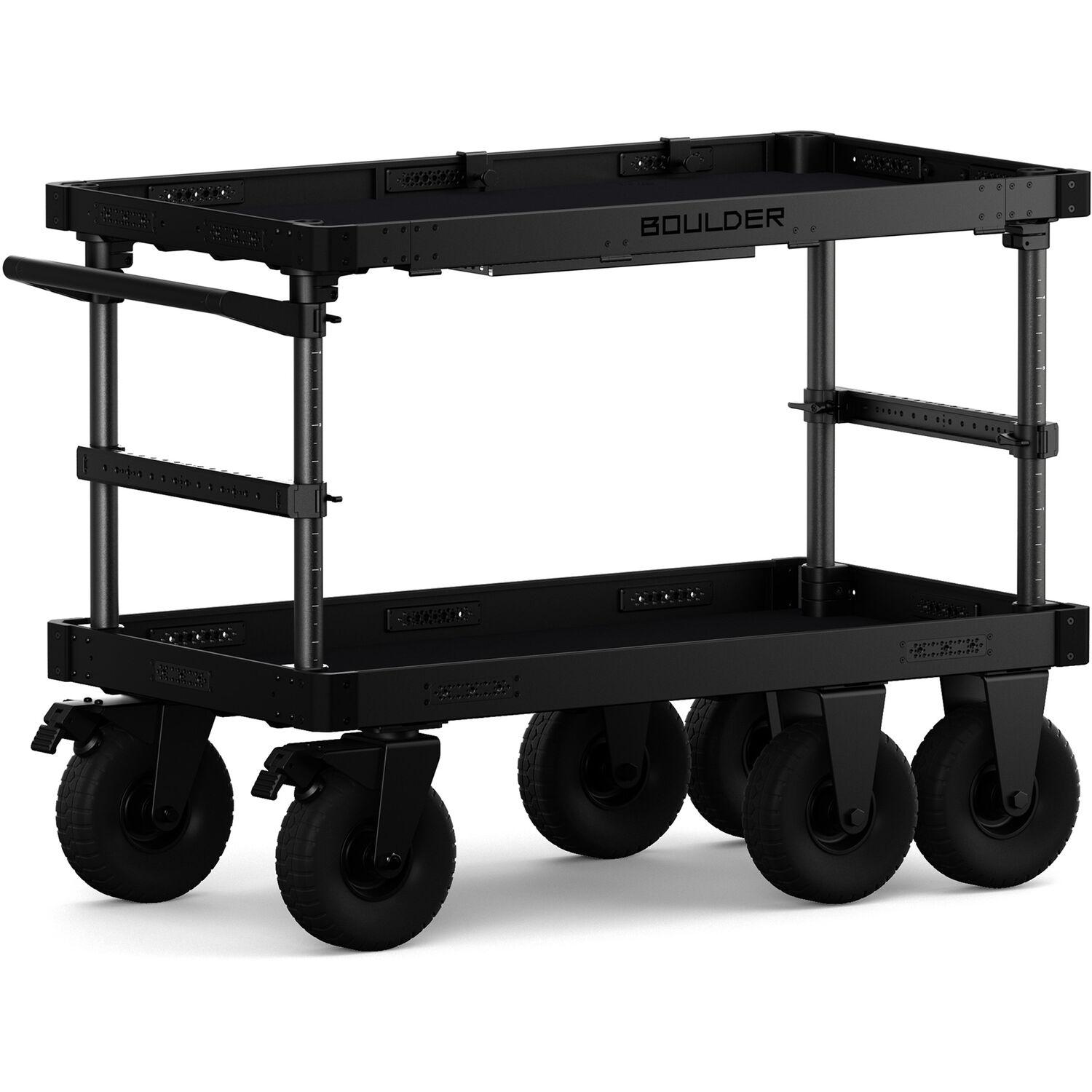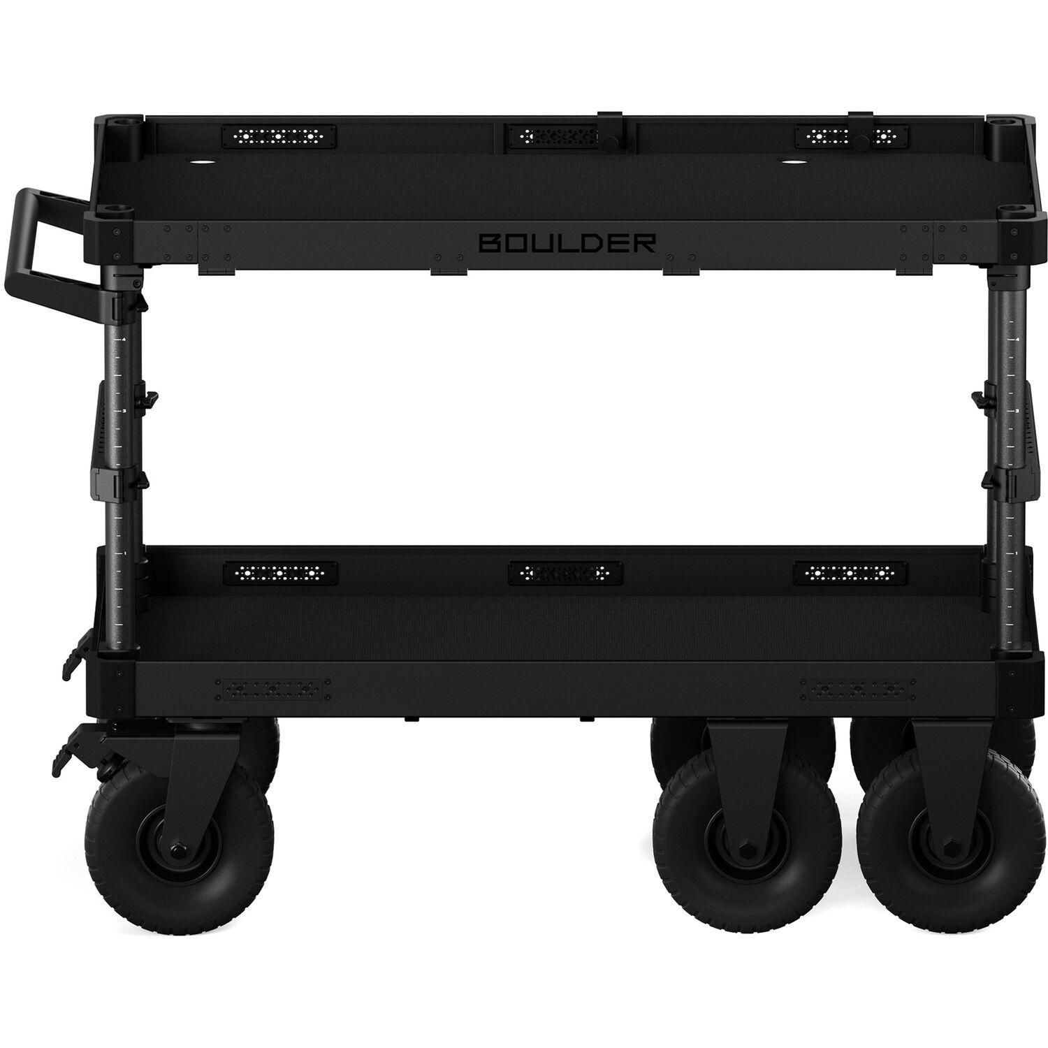 Store and transport more gear or set up a larger mobile video village with the Boulder Camera Cart XL from Tilta. Compared to the standard model, this XL version increases the tray lengths by 15.75" and widths by 3.94", and it boosts the wheels up to 10". Outfit the cart with optional Boulder ecosystem accessories and other items via the multiple 1/4"-20 and 3/8"-16 threaded mounting locations with locating points. You can also use the integrated 35mm tube clamps to hold an optional light stand or C-stand. With so much gear potential, the cart has been constructed from high-strength galvanized steel, with a reinforced rear spine and crossbeams, for a massive 1102 lb load capacity.