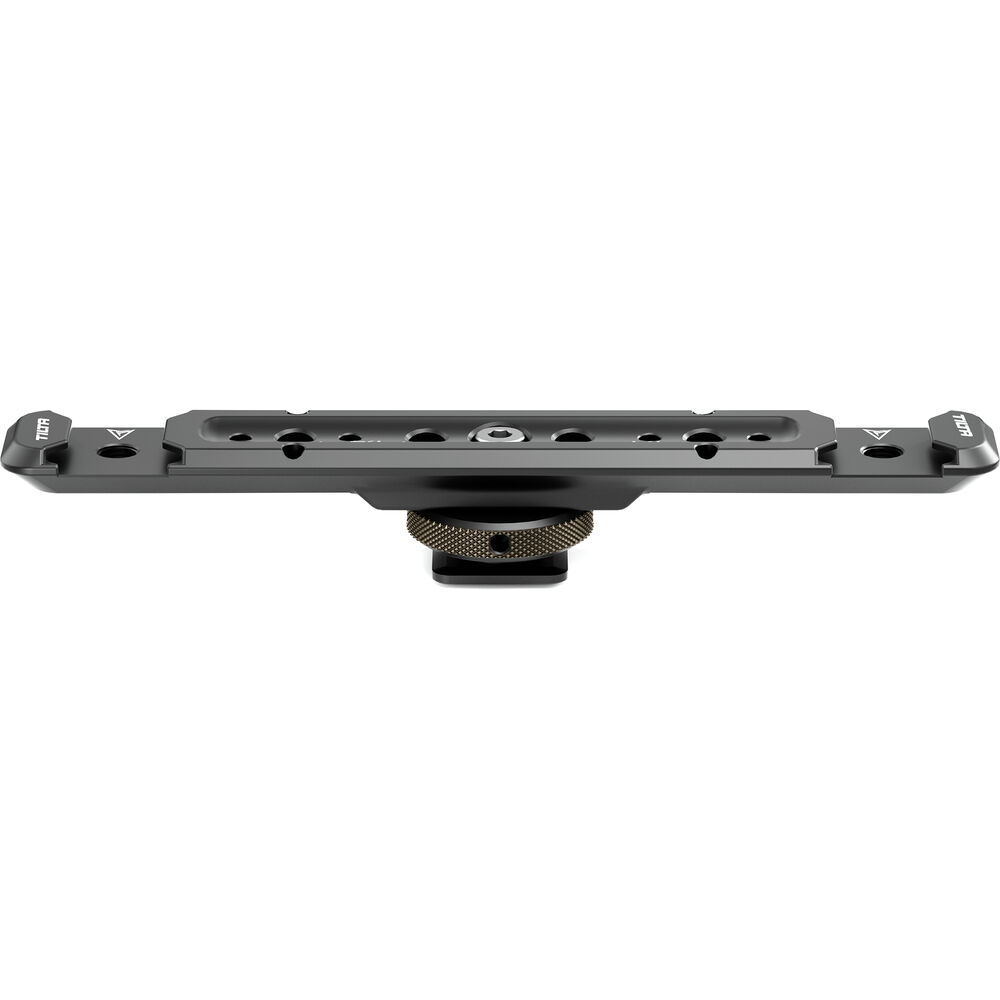 Mount multiple accessories onto your camera or cage using the black Cold Shoe Expansion Bracket from Tilta provides you with two shoe mounts, two 1/4"-20 anti-twist threads, four 1/4"-20 threads, and an integrated NATO rail along the mount for attaching accessories that weigh up to 4 lb.
