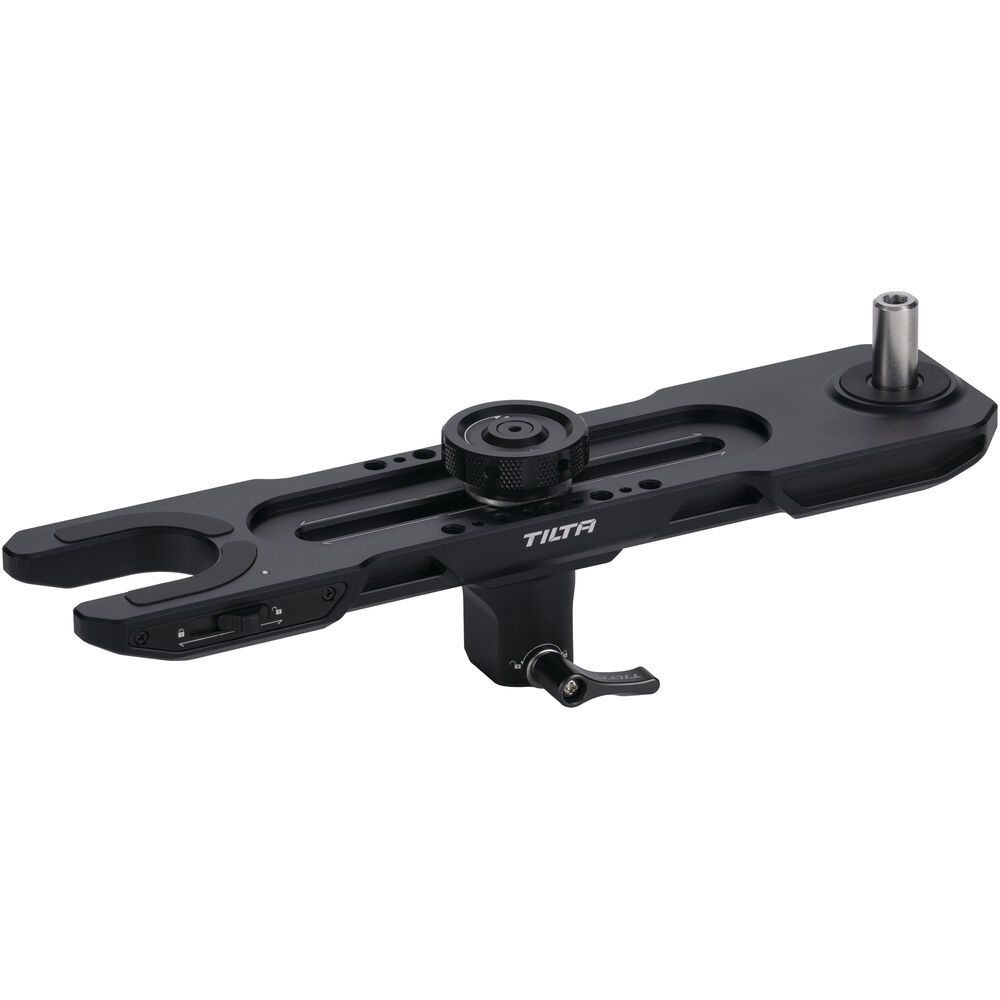 Secure your Tilta Float post, vest, and stabilizing arm to one Docking Station with this adjustable system, allowing you to more efficiently rest your gimbal without needing to take it apart. The center 5/8" baby pin is compatible with various stands and can be adjusted for optimal balance. One end of the dock fits the post and the other end has an adapter to fit the vest, as well as a place to attach the included lanyard and secure the gimbal arm. The bracket is constructed with aluminum alloy and stainless steel for a lightweight yet durable design.