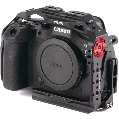Protect and add accessory mounting options to your camera using the black Tilta Full Camera Cage for R6 Mark II. This cage provides all-around protection, an Arca-type bottom plate, and compatibility with the separately available Tilta 15mm LWS Baseplate. Top and left-side NATO rails enable you to add handles for horizontal or vertical capture. Accessory mounting options include one rosette, two shoe mounts, multiple anti-twist 1/4"-20 threads, and M3 lens support threads. The R6 Mark II cage comes with a micro-HDMI/USB-C cable clamp, a magnetic flathead screwdriver, and two Allen keys.