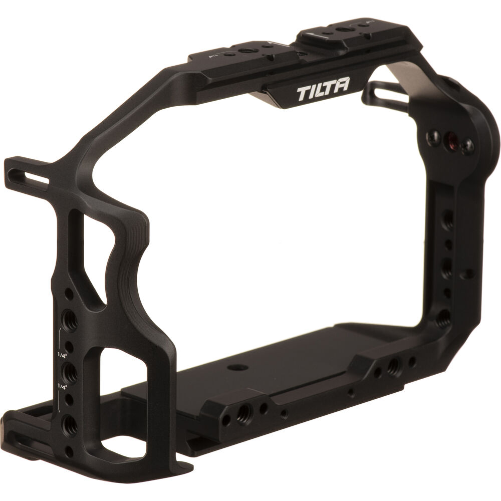 This black Full Camera Cage from Tilta is a formfitting aluminum cage that protects your FUJIFILM X-H2S or X-H2 mirrorless camera during production without impeding access to your camera's functions, displays, ports, or battery. The camera is secured in the cage using a 1/4"-20 mounting screw.