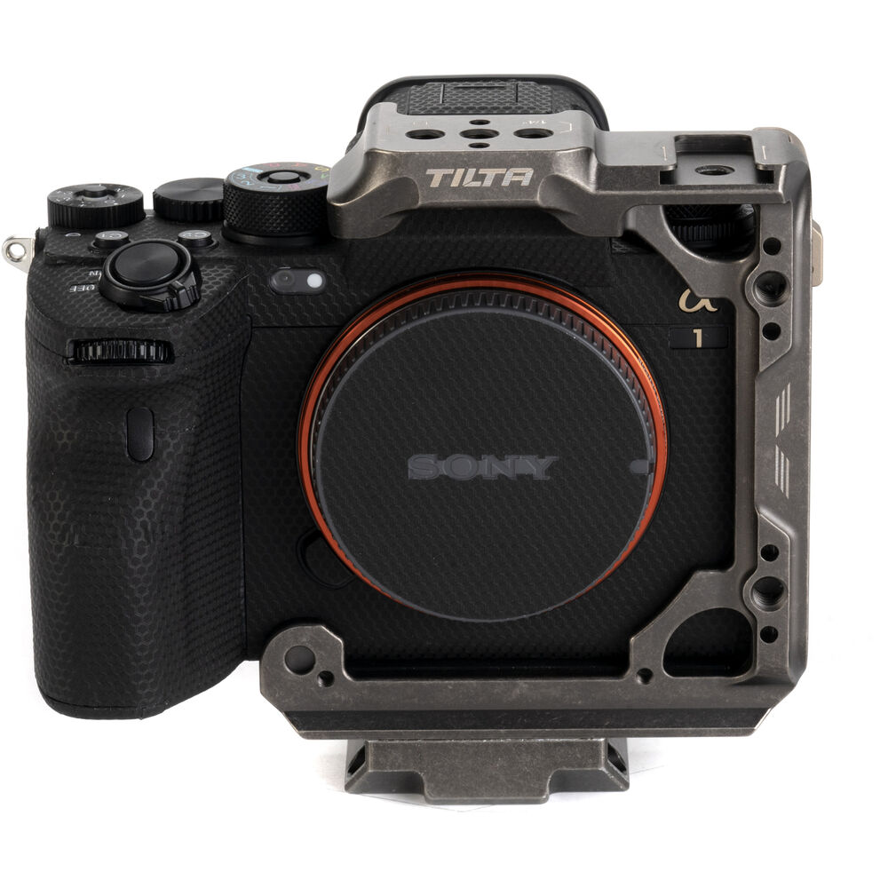 Protect and add accessories to your Sony a1 mirrorless camera with this lightweight tactical gray Half Camera Cage from Tilta. The aluminum and stainless steel cage maintains access to the camera's controls, and it weighs only 4.8 oz, so it won't add much weight to your camera.