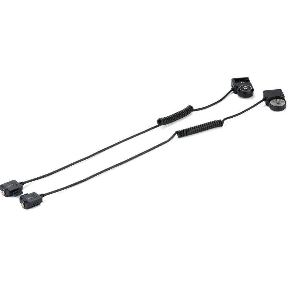 This pair of Handle Extension Cables for DJI Ronin 4D from Tilta enables you to use the 4D handles in a shoulder-mounted configuration. Each cable has a coiled midsection and an ARRI-type rosette mount on one end.