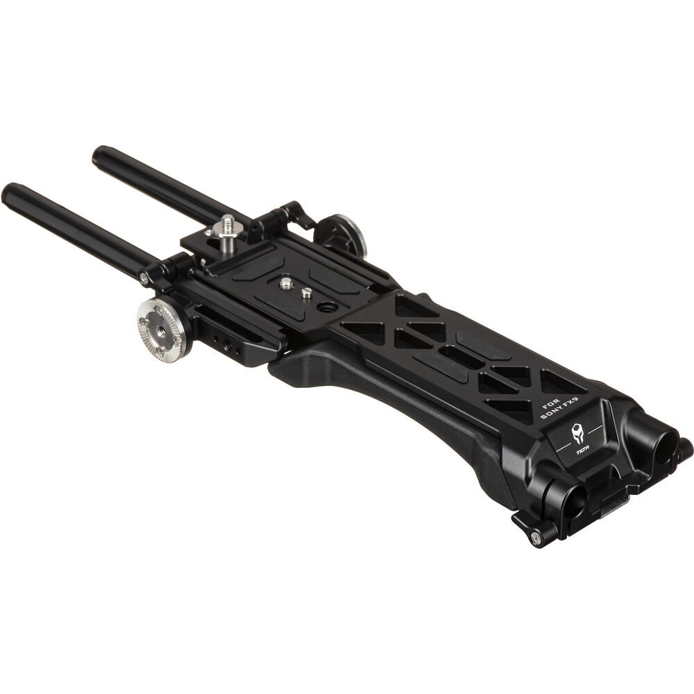 Dedicated to Tilta's Camera Cage for the Sony PXW-FX9, this Quick Release Baseplate is a replacement part from the original cage. This baseplate is Sony VCT-U14-compatible and allows you to attach a variety of accessories via 15mm rods on either the front or back sides of the plate. The plate also has an integrated shoulder mount, for quick switching to shouldered shooting, and has ARRI rossette connections on both left and right sides for attaching accessory handles, including Sony's own FX9 operating handle.