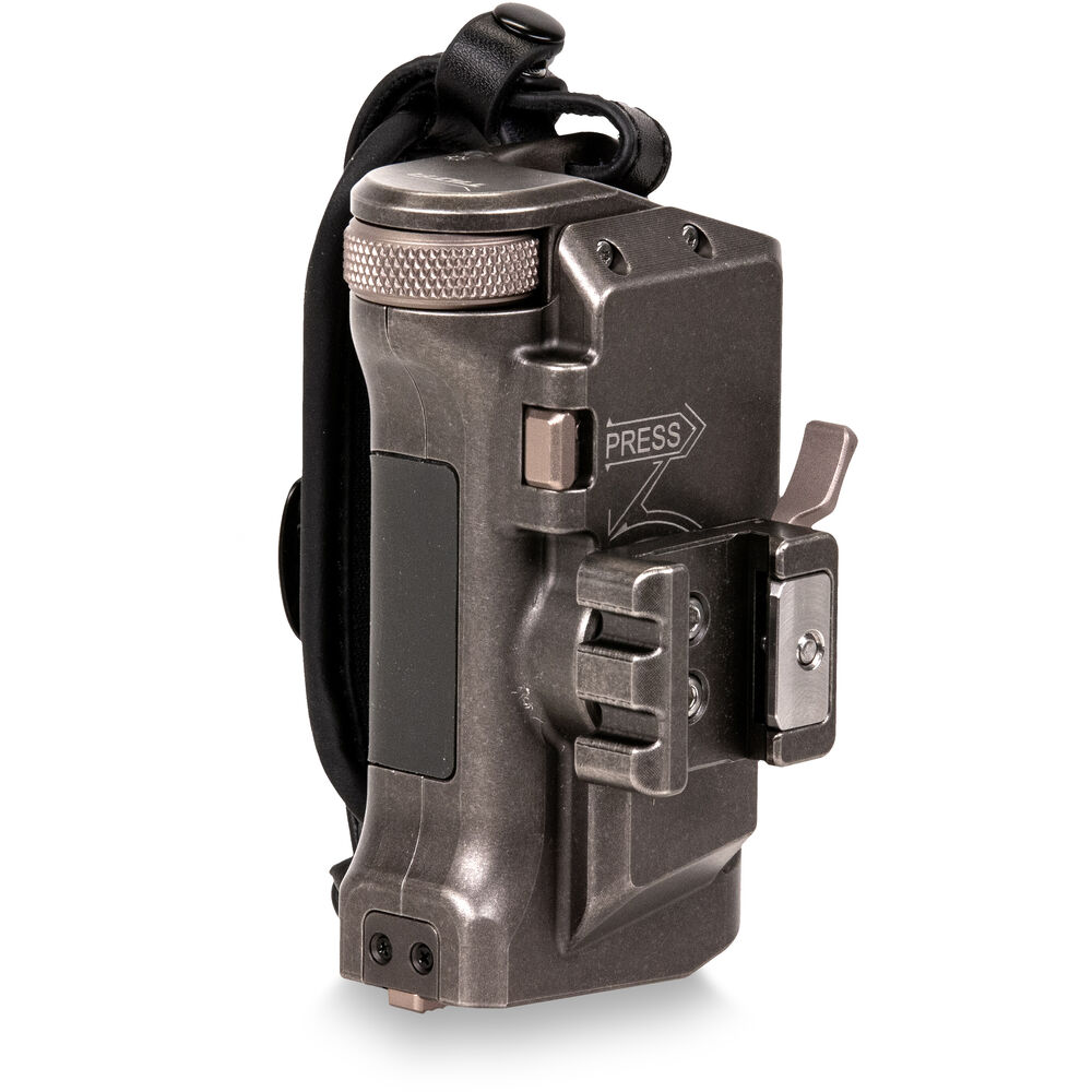 It comes with a NATO rail clamp, allowing you to attach it to a suitable camera or cage. The NATO clamp can be removed to reveal two threaded mounting holes that allow you to choose from a variety of attachment options for mounting on your camera cage or baseplate. The comfortable handgrip accepts an F55/F570 L-series battery internally, allowing you to power your Nucleus Nano focus control motor via the built-in thumbwheel, and it includes a run/stop cable. The handgrip also features a 12 VDC output port.