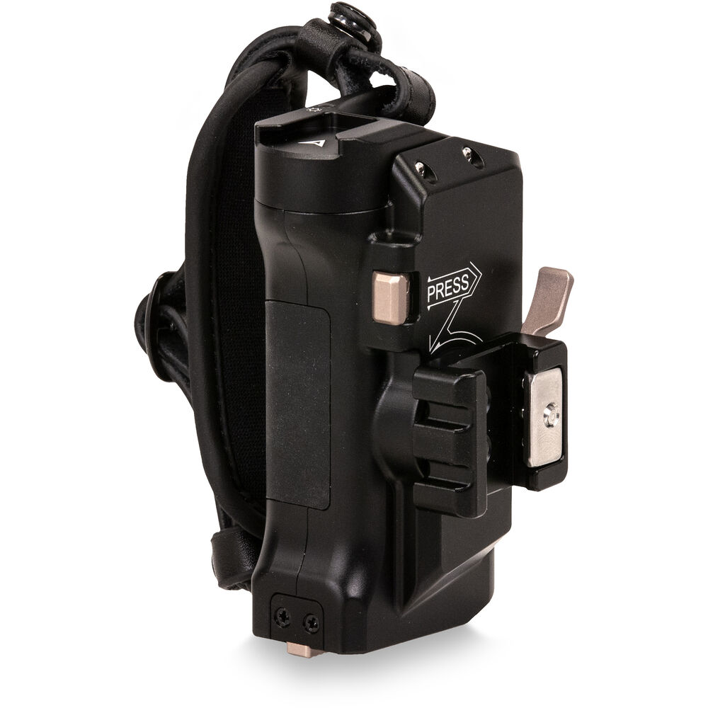 Add stability, accessory powering options, and the ability to start/stop your camera with this Tiltaing Right-Side Advanced Power Handle with Run/Stop for F570 Battery from Tilta. Designed with a black finish for Tiltaing camera cages, it features a button for triggering recording on/off over an optional Tilta R/S cable connection to compatible cameras. Multiple R/S cables are available to suit your camera.