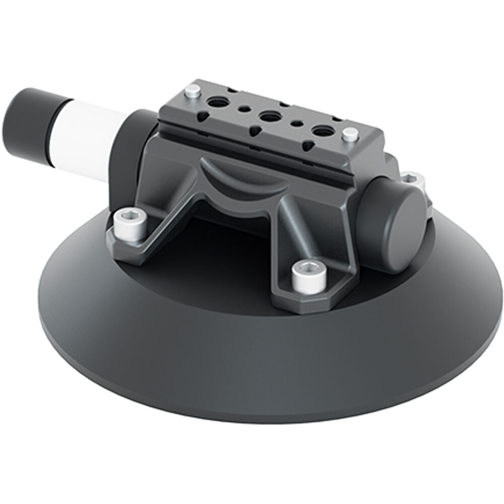 The 4.5" diameter Universal Suction Cup with Mounting Bracket from Tilta features a vacuum pump on the side that allows you to securely attach it to smooth, non-porous surfaces. It's made of rubber and silicone and provides multiple 1/4"-20 threads on top for mounting various devices and accessories, including action cameras such as GoPro HERO, DJI Action, or Insta360.