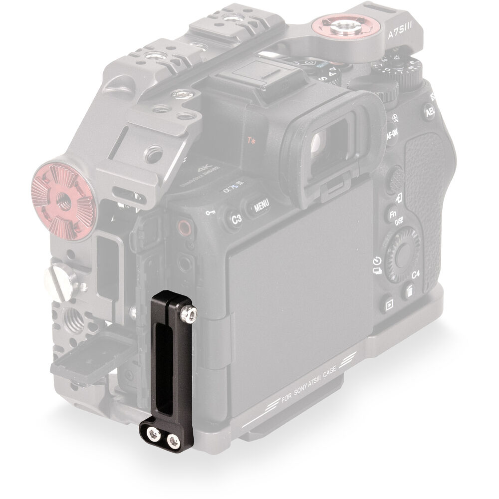 Compatible with Tilta full and half camera cages for the Sony a7S III, this USB Type-C Cable Clamp attaches to the side of the cage to clamp your USB Type-C cable connector and prevent it from accidental disconnection. It covers both the USB Type-C and micro-USB ports of the camera but is sized to clamp the USB Type-C connector only. This version of the clamp is designed in Tilta gray to best match the Tilta gray version cages. After securing the clamp to the cage, you can use the included Allen key to tighten it around the cable connector by tightening the integrated screw at the top of the clamp. The integrated screw is ridged, so you can tighten it with your fingers as well, although not as tight.