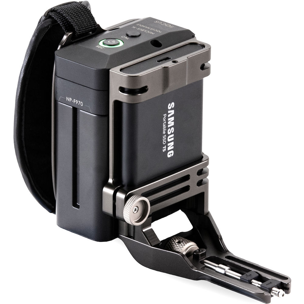 The F970 battery-powered Tiltaing Side Focus Handle Type I from Tilta adds a variety of functions to your half or full Tiltaing camera cage. Pair it with a Nucleus Nano motor for fingertip focus control and a Nucleus Nano R/S cable for a record start/stop button with compatible cameras. This Tilta gray handle features an integrated holder for a Samsung T5 SSD.