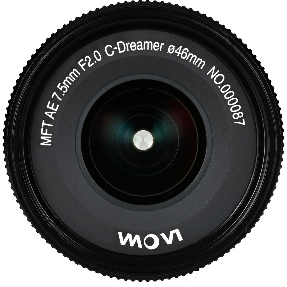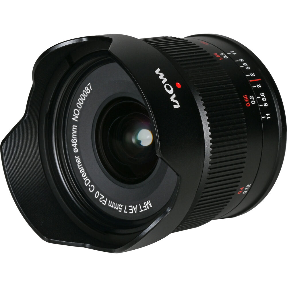 Now featuring automatic aperture control, this version of the Laowa 7.5mm f/2 MFT is a super-wide lens for Micro Four Thirds Cameras. Designed with a CPU chip and motor, this lens allows the adjustment of aperture via the camera body. The focus magnifier can also be triggered for easier focusing when rotating the focus ring. The metadata will be stored on EXIF as well. No aperture ring makes the lens a bit smaller in size, and this ultralight lens is well-suited for use with drones and gimbals. The wide focal length and bright f/2 maximum aperture are also ideal for landscape and astrophotography applications, and its optical design incorporates two aspherical elements and three extra-low dispersion elements to control distortion and aberrations for improved clarity and sharpness. Additionally, the lens's manual focus design permits working with subjects as close 4.7" away.