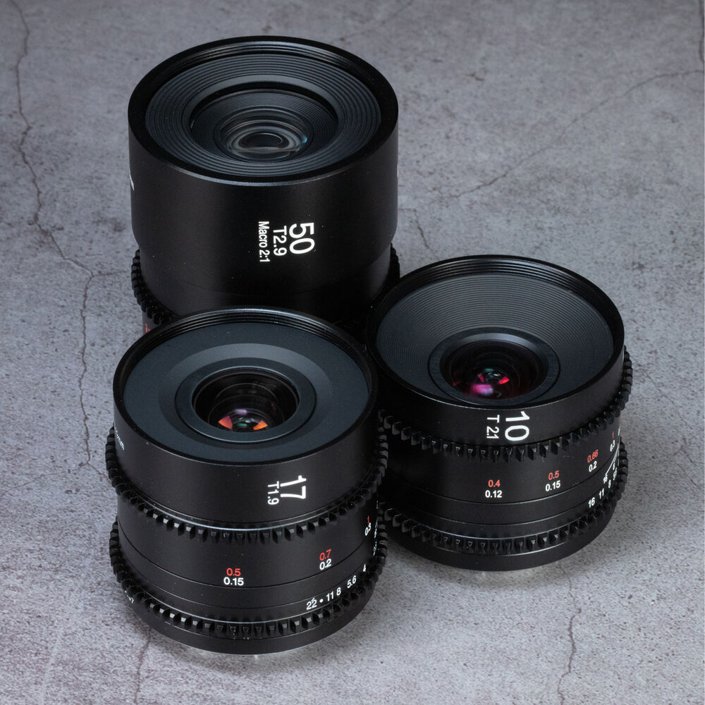 Great for a general shooting package, this Laowa MFT Cine Prime 3-Lens Wide + Macro Bundle of a 10mm, 17mm, and 50mm macro from Venus Optics comprises lightweight, fast, and sharp lenses suitable for handheld, tripod, stabilizer, gimbal work. The lenses feature fast apertures for shooting in low-light environments, they can be used on exteriors or interiors, and their small size and close focus capability make them extremely useful in tight spaces. The 50mm macro allows you to get extremely close for capturing surface detail. Designed to interface with standard cine lens accessories, these lenses provide a great basic shooting kit for MFT cameras and come in a single 3-lens case, making it easy to transport and store your kit.