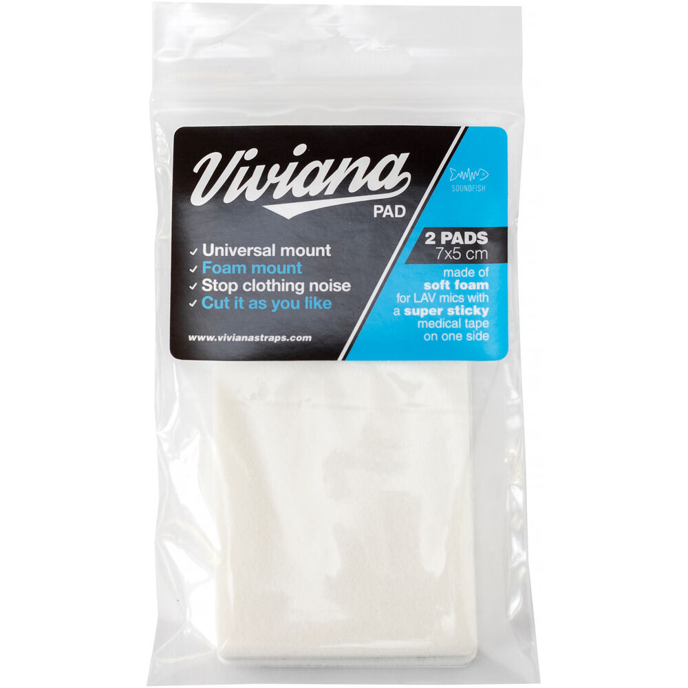 This two pack of white Extra-Large Soft Foam Mounts for Lavalier Microphones from Viviana Straps provides a pair of multipurpose foam pads, each featuring medical-grade adhesive tape on one side. The pad can be used as a quick solution to prevent rustling noise when mounting a lavalier microphone to the skin, clothing, or any other application surface. These oversize pads measure 2.76 x 1.97" and are designed to be trimmed down to the necessary size needed for specific lav mounting requirements.