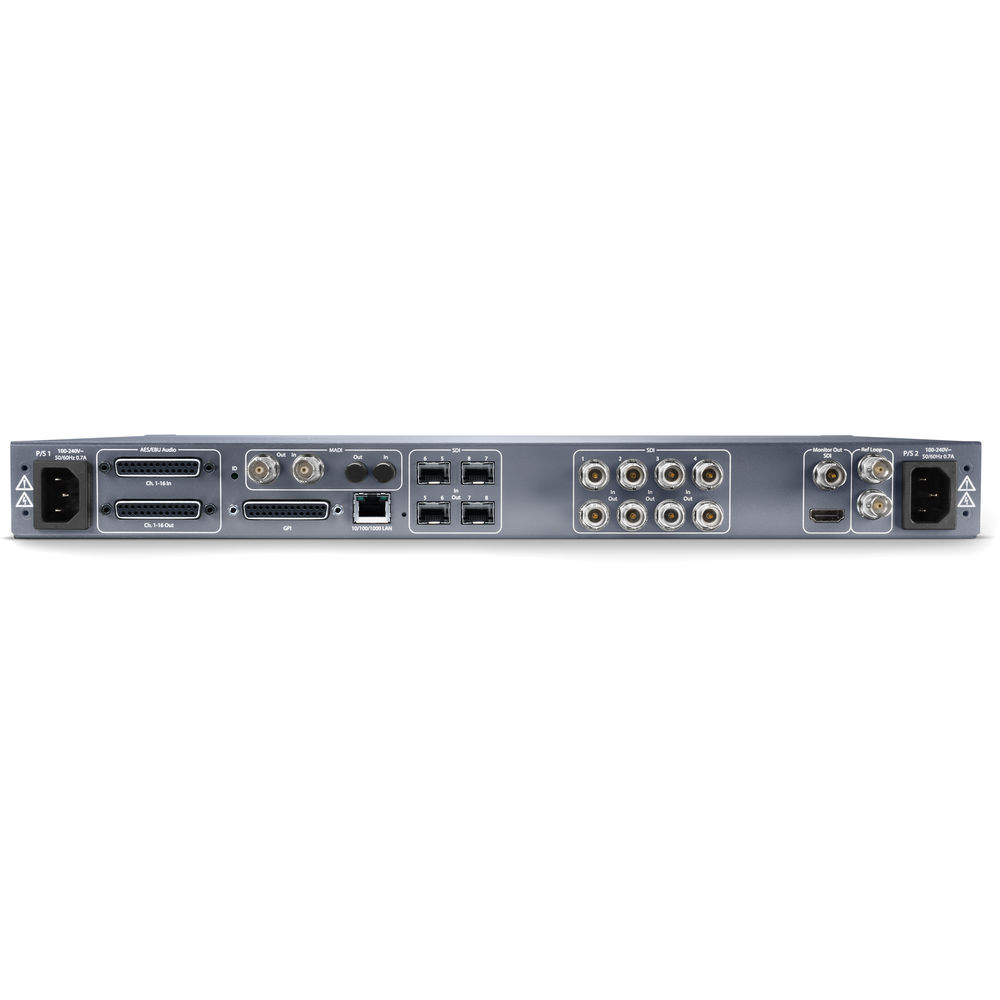 In single-channel mode, you can upscale HD or SD video to and from UHD 4K as well as converting multiple channels of audio over 3G-SDI, AES, and MADI in a wide-ranging matrix. In four-channel mode, you can simultaneously convert and scale up to four 2K/HD and SD video signals. Features include scaling, color correction, proc amp controls, motion adaptive deinterlacing, and more.