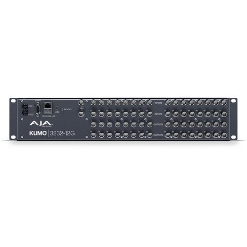 The KUMO 3232-12G Compact SDI Router from AJA provides signal control and supports full broadcast specifications over 12G-SDI with quality that exceeds SMPTE specifications. This compact 2 RU format router is designed for broadcast, production, or postproduction environments including mobile sports trucks, edit suites, corporate video installations, or live theatrical A/V rigs.