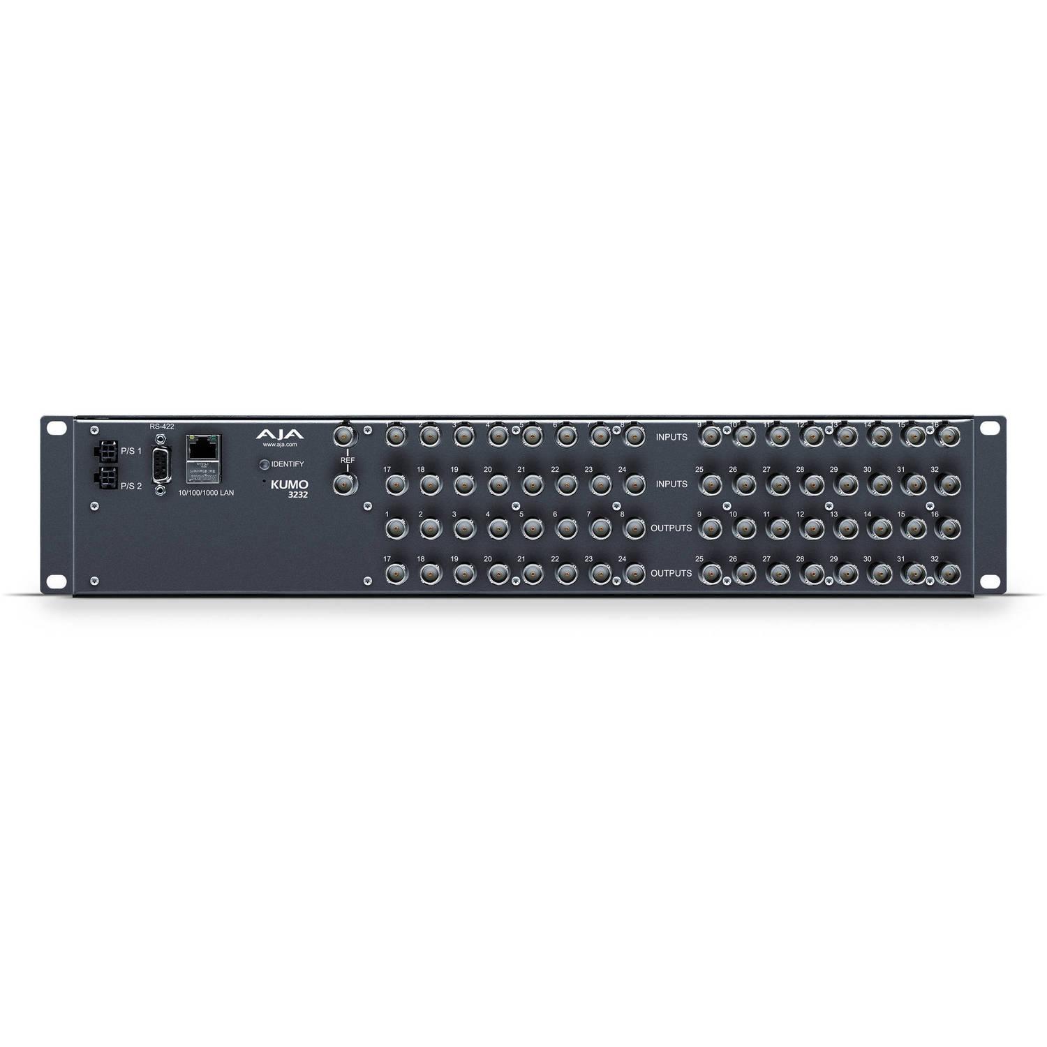 The KUMO 3232 Compact SDI Router from AJA provides signal control and supports full broadcast specifications over 3G-SDI with quality that exceeds SMPTE specifications. This compact 2 RU format router is designed for broadcast, production, or postproduction environments including mobile sports trucks, edit suites, corporate video installations, or live theatrical A/V rigs.