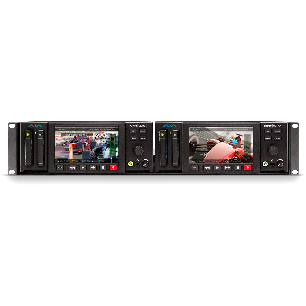 This 2 RU Rackmount Shelf from AJA allows you to mount two Ki Pro Ultra units side by side in a standard 19" rack.