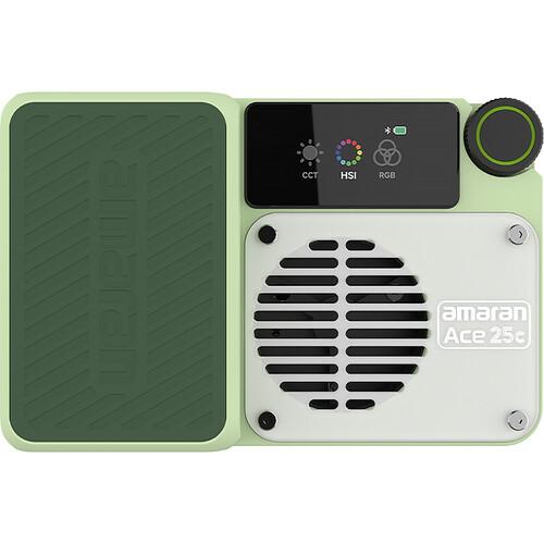 Bringing best-in-class brightness to on-the-go, camera-mounted light setups, the green Ace 25c RGB LED Light Panel from amaran is a versatile, creator-friendly light source that sets up quickly and travels light. When operating in Boost mode, the light's 32W output notches 1171 lux at 3.3' and 5600K, with approximately 50 minutes of runtime at this maximum setting. The light also clocks upwards of four hours and 40 minutes of runtime in its low-power Silent mode. The Ace 25c has a 360° color control in both RGB and hue, both saturation and intensity modes, and a CCT color temperature range of 2300-10,000K with a green/magenta adjustment option. In all its modes, the Ace 25c achieves a high color accuracy of 95 in both CRI and TLCI ratings.