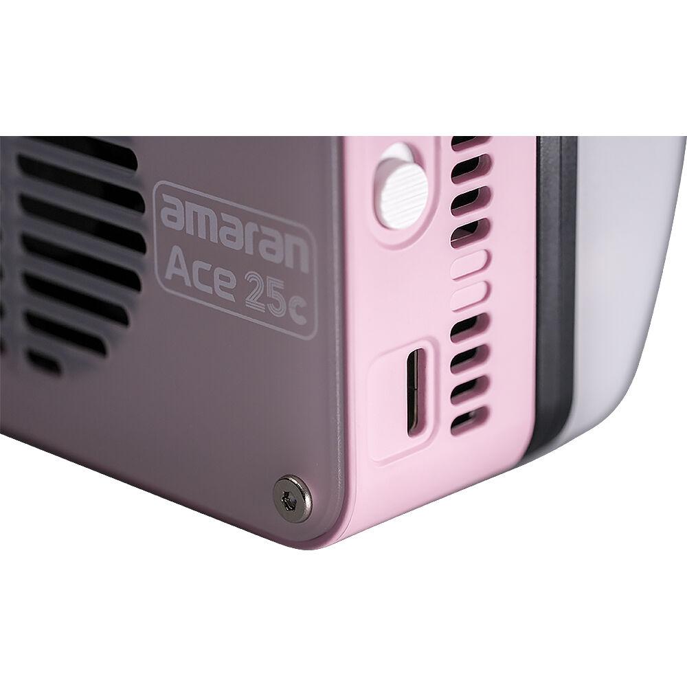 Bringing best-in-class brightness to on-the-go, camera-mounted light setups, the pink Ace 25c RGB LED Light Panel from amaran is a versatile, creator-friendly light source that sets up quickly and travels light. When operating in Boost mode, the light's 32W output notches 1171 lux at 3.3' and 5600K, with approximately 50 minutes of runtime at this maximum setting. The light also clocks upwards of four hours and 40 minutes of runtime in its low-power Silent mode. The Ace 25c has a 360° color control in both RGB and hue, both saturation and intensity modes, and a CCT color temperature range of 2300-10,000K with a green/magenta adjustment option. In all its modes, the Ace 25c achieves a high color accuracy of 95 in both CRI and TLCI ratings.