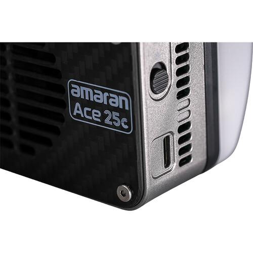 Bringing best-in-class brightness to on-the-go, camera-mounted light setups, the silver Ace 25c RGB LED Light Panel from amaran is a versatile, creator-friendly light source that sets up quickly and travels light. When operating in Boost mode, the light's 32W output notches 1171 lux at 3.3' and 5600K, with approximately 50 minutes of runtime at this maximum setting. The light also clocks upwards of four hours and 40 minutes of runtime in its low-power Silent mode. The Ace 25c has a 360° color control in both RGB and hue, both saturation and intensity modes, and a CCT color temperature range of 2300-10,000K with a green/magenta adjustment option. In all its modes, the Ace 25c achieves a high color accuracy of 95 in both CRI and TLCI ratings.