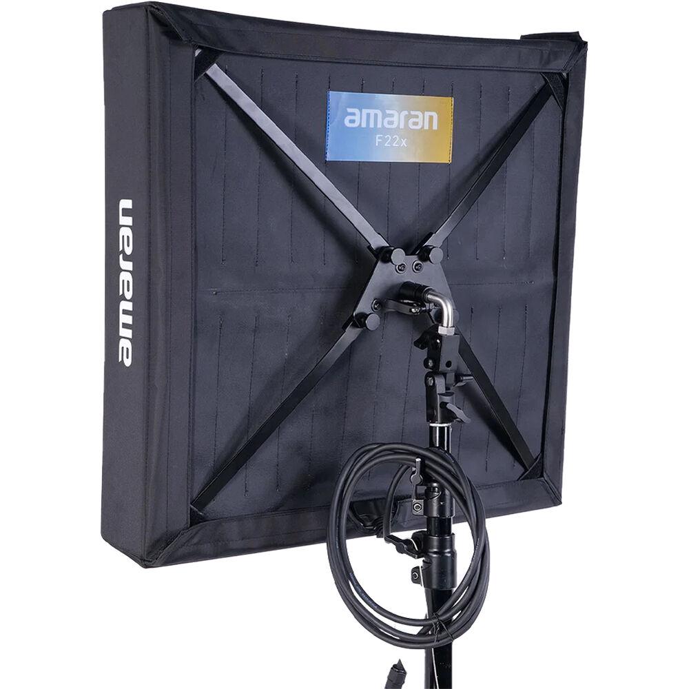 The F22x Bi-Color LED Flexible Mat from amaran is powerful, versatile, and flexible bi-color LED mat that measures 2x2'. It offers outstanding light output and color rendering suitable for a variety of users, from filmmakers to videographers, content creators, and still photographers. Providing 200W of power, this ultralight fixture's high-output bi-color chipset can be tuned from 2500K to 7500K, and features nine customizable lighting FX. It has stellar CRI and TLCI scores of 95+ and 98+, and stepless dimming from 0 to 100%. An included folding X-frame stretches the mat to a rigid panel that can be attached directly to a C-stand grip head using the straight Baby Pin adapter, or onto any standard light stand with the included right angle Baby Pin and tilting stand mount. The included foldable softbox has two strengths of diffusion, and a fabric grid that uses using an integrated hook-and-loop fabric to instantly turn this flexible mat into an ultrathin soft light that will add beautifully controlled soft light to a scene.
