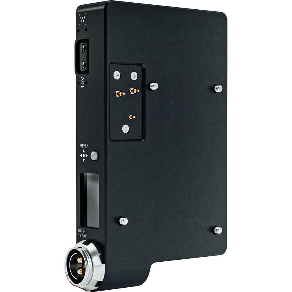 The 26V Gold Mount Plus Plate from Anton/Bauer enables you to power your ARRI ALEXA LF, ALEXA 65, or ALEXA SXT camera with a single Dionic 26V battery. A 2-pin Fischer input port is prioritized to enable hot swapping when a block battery is also attached.